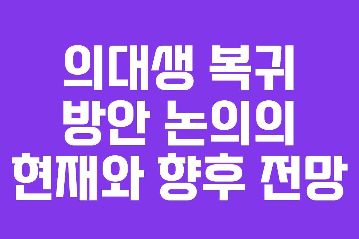 의대생 복귀 방안 논의의 현재와 향후 전망