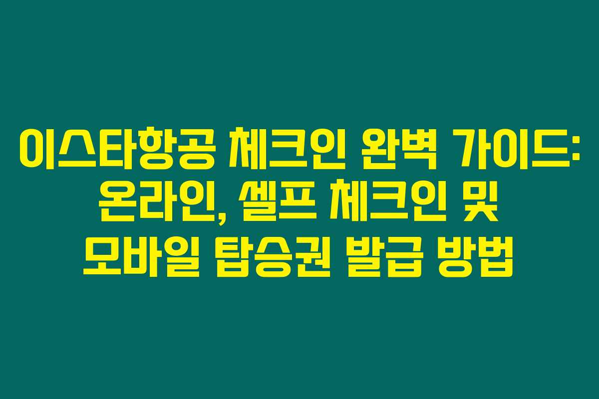 이스타항공 체크인 완벽 가이드: 온라인, 셀프 체크인 및 모바일 탑승권 발급 방법