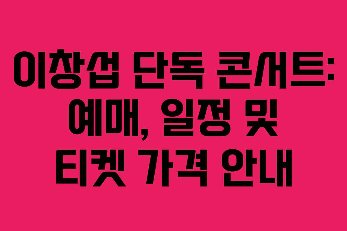 이창섭 단독 콘서트에 대한 예매 및 일정 정보를 정리했습니다. 콘서트는 12월 28일과 29일에 수원 실내체육관에서 진행됩니다. 매진되기 전에 미리 예매하여 좋은 자리를 확보하시기 바랍니다.