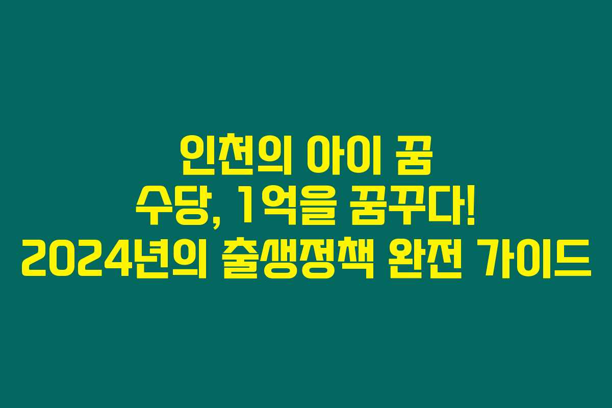 인천의 아이 꿈 수당, 1억을 꿈꾸다! 2024년의 출생정책 완전 가이드