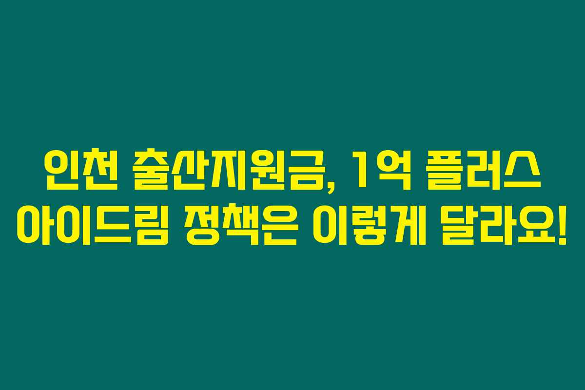인천시는 저출산 문제 해결을 위해 ‘1억 플러스 아이드림(i dream)’이라는 새로운 정책을 시행하고 있어요. 이 정책은 2024년부터 출산한 아동에게 18세까지 총 1억 원을 지원하기 위한 프로그램으로, 여러분도 곧 이 혜택을 누릴 수 있을 거예요.