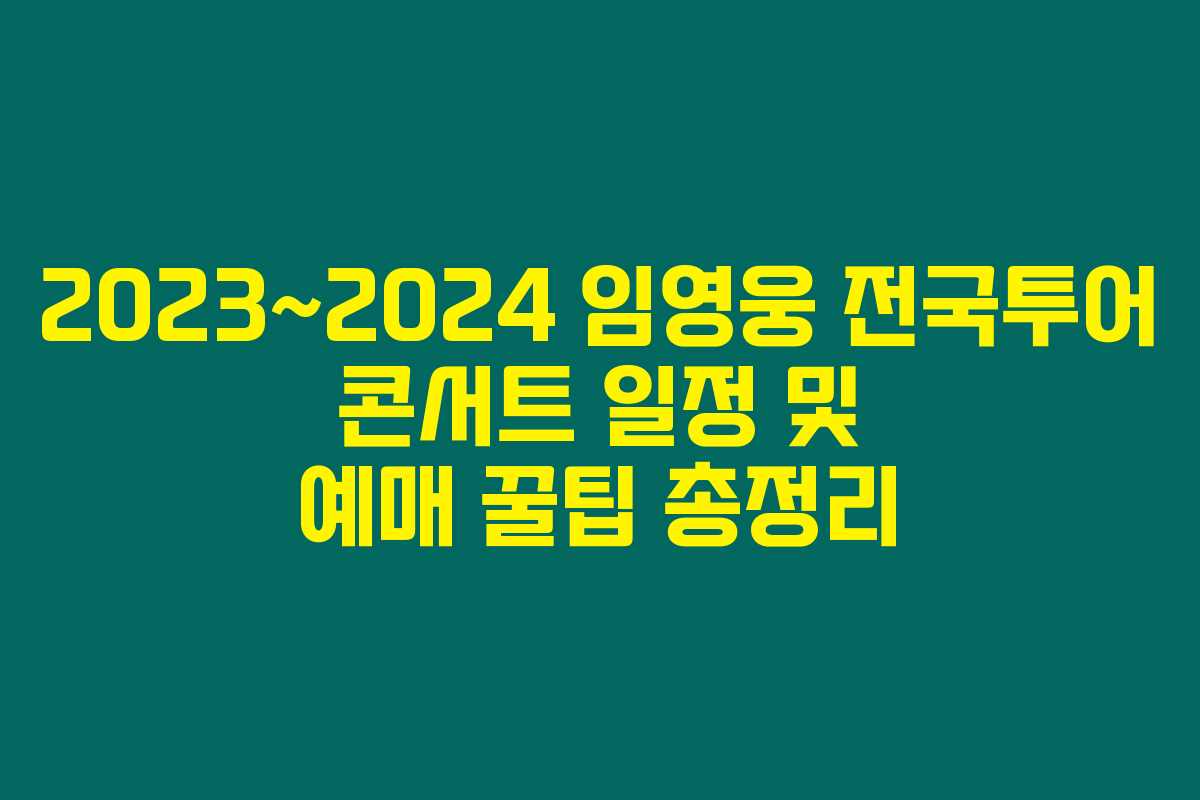 임영웅의 전국투어에 대한 정보를 찾고 계신가요? 임영웅 전국투어 콘서트를 놓치고 싶지 않다면, 아래 내용을 꼭 확인하세요. 뛰어난 실력과 매력을 가진 임영웅의 공연일정 및 가격, 그리고 예매 팁까지 한 곳에 정리했답니다. 공연 예매에 실패하고 후회하는 일이 없도록 알짜배기 정보들만 모았으니 집중해 주세요!