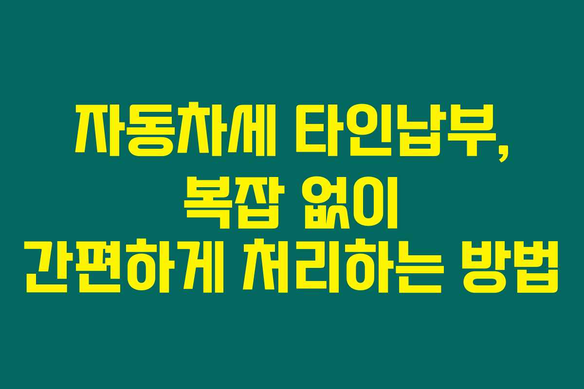 제가 직접 경험해본 결과로는, 자동차세 납부는 매년 꼭 해야 하는 일인데, 어떤 이유로 본인이 직접 할 수 없는 경우가 많더라고요. 이럴 때 유용한 방법이 바로 자동차세 타인납부입니다. 아래를 읽어보시면, 이 서비스를 어떻게 활용할 수 있는지 쉽게 이해하실 수 있을 거예요.