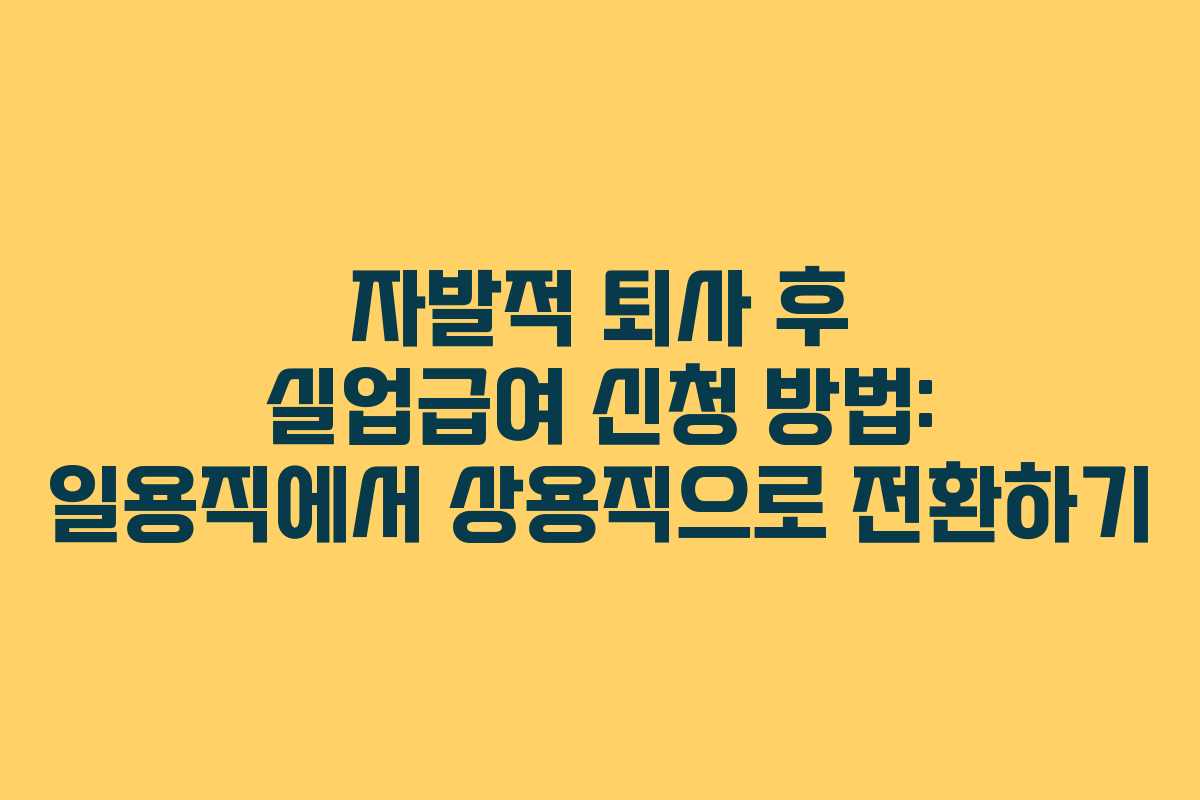 자발적으로 퇴사를 하더라도 실업급여를 받을 수 있는 방법이 있습니다. 일반적으로 알려지지 않은 이 방법은 자발적 퇴사를 고민하는 분들에게 유용할 수 있습니다. 이번 포스팅에서는 자발적 퇴사 후 실업급여를 신청하는 방법과 일용직에서 상용직으로 전환하는 방법에 대해 자세히 설명하겠습니다.
