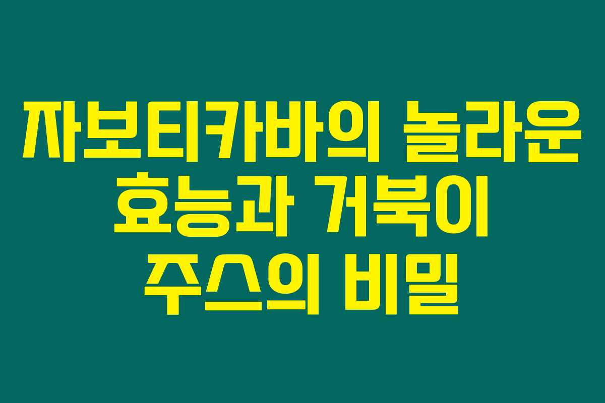 최근 거북이 주스라는 이름으로 알려진 자보티카바에 대한 관심이 높아지고 있습니다. 자보티카바가 거북이 주스라고 불리는 이유는 무엇일까요? 그리고 그 놀라운 효능은 어떤 걸까요? 아래를 읽어보시면 자보티카바에 대해 궁금증이 풀릴 거예요.