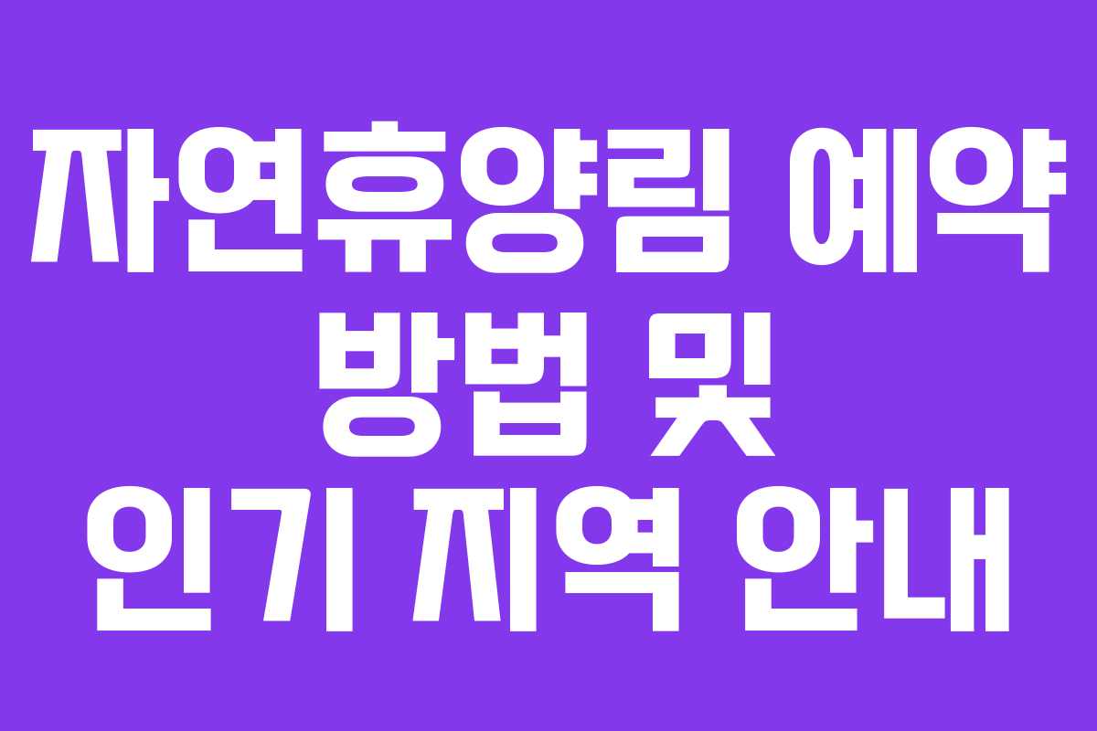 자연휴양림은 사전 예약을 통해서만 방문할 수 있으며, 인기 지역은 예약이 오픈되자마자 금방 마감됩니다. 따라서 예약을 원하신다면 미리 준비하는 것이 중요합니다.
