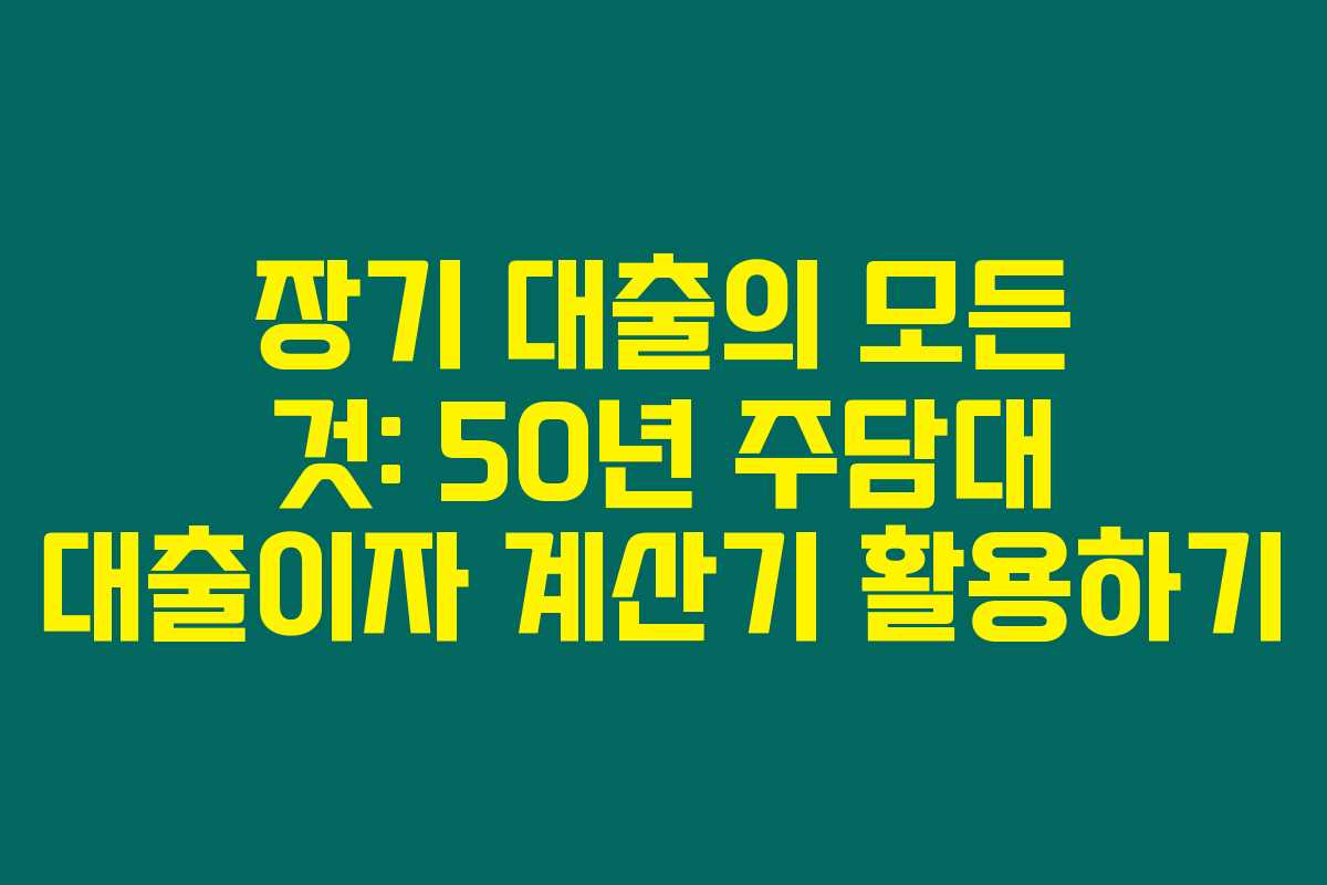마무리하자면, 50년 주택담보대출은 여러 장점이 있어 많은 사람들에게 인기 있는 선택이 되고 있어요. 대출이자 계산기를 잘 활용하여 유리한 조건에서 대출을 받으시기 바랍니다. 만약 추가 정보가 필요하다면 언제든지 댓글로 질문해 주세요!