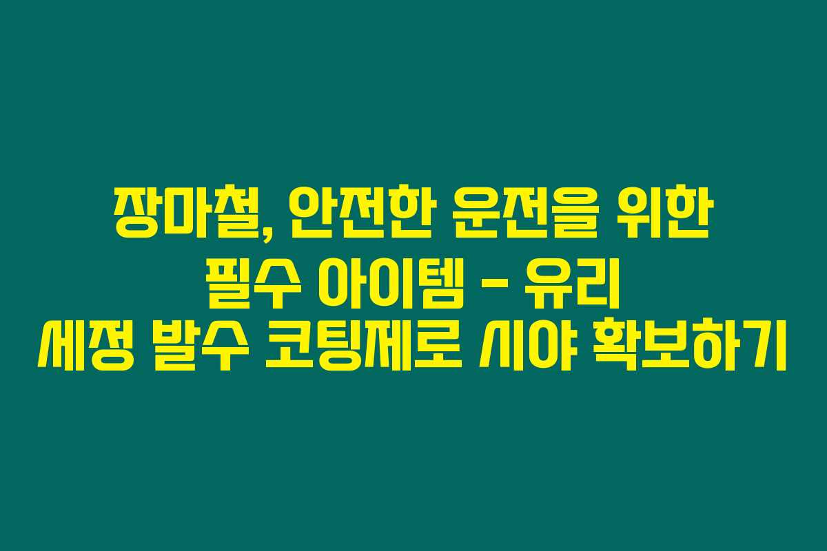 장마철에는 특별한 차량 관리가 필요해서 정말 귀찮지요? 하지만 유리 세정 발수 코팅제는 이러한 불편함을 덜어주는 아주 중요한 아이템이랍니다. 비 오는 날 안전하고 편안한 운전을 위해 꼭 활용해보세요. 추가적으로 차량 유지 보수에도 신경 쓴다면 훨씬 더 안전한 드라이빙 경험을 할 수 있을 것입니다.