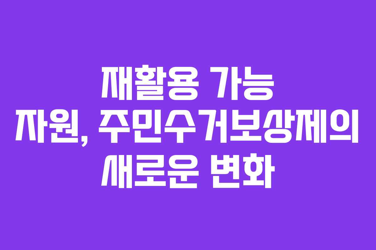 재활용은 환경 보호의 기본적인 토대가 됩니다. 주민수거보상제의 확대로 인해 더 많은 사람들이 재활용에 참여할 수 있는 환경이 조성되었습니다. 올바른 분리수거와 재활용을 통해 우리는 환경을 보호하고 동시에 보상을 받을 수 있습니다. 이러한 변화를 함께 만들어가는 것이 중요합니다. 지금 바로 재활용에 동참해보세요.