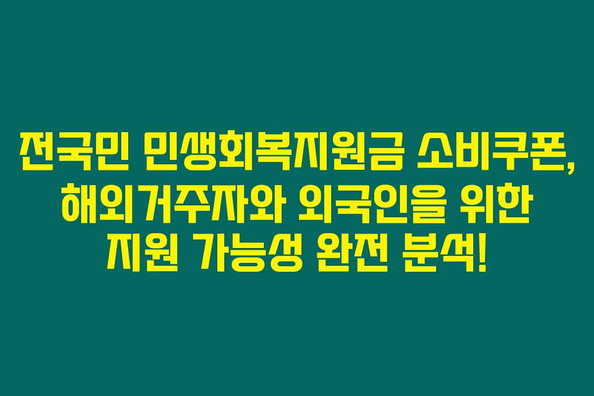 전국민 민생회복지원금 소비쿠폰, 해외거주자와 외국인을 위한 지원 가능성 완전 분석!