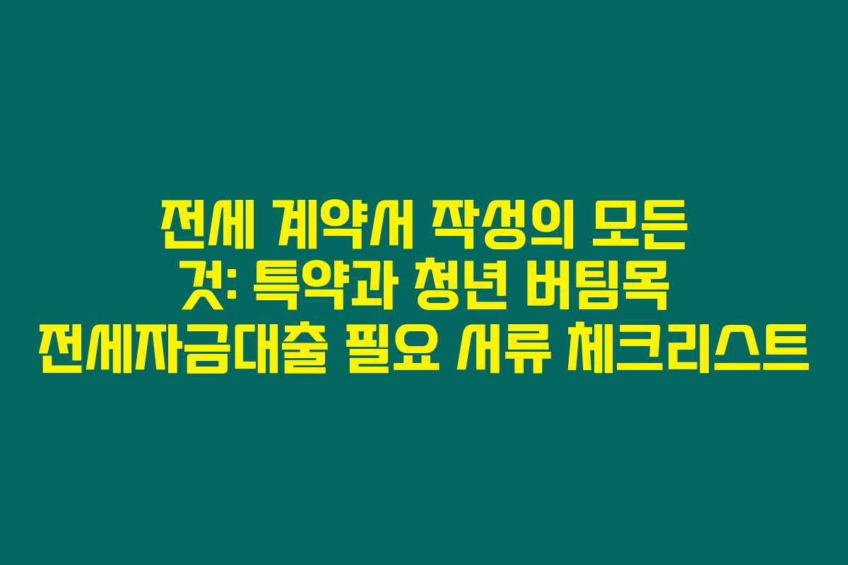 전세계약서를 작성하기 전에 특약과 청년 버팀목 전세자금대출을 위한 필요한 서류를 체크하는 것이 정말 중요해요. 제가 직접 알아본 바로는, 잘 준비된 서류가 시간과 노력을 절약해 준답니다. 아래는 제가 필요했던 서류 리스트입니다.