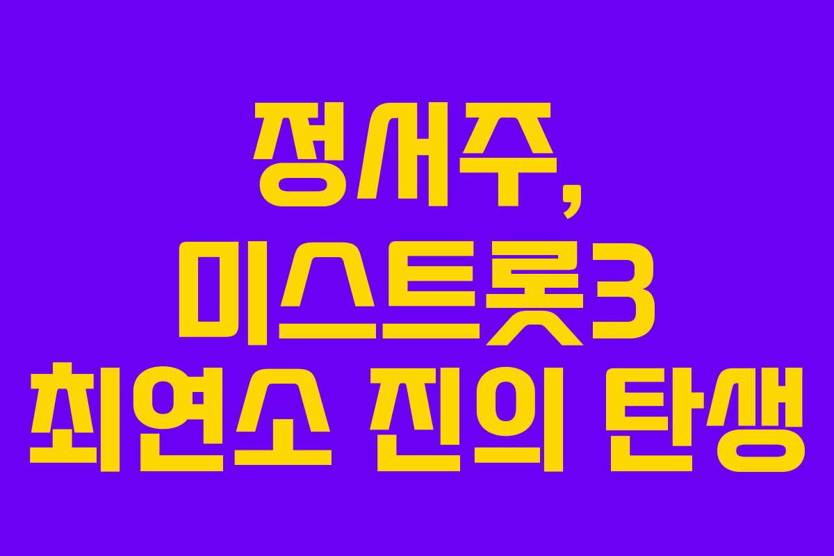 정서주는 올해 만 15세로, 고등학교 1학년입니다. 미성년자가 미스트롯 진이 되리라고는 아무도 예상하지 못했습니다. 그녀는 결승에서 맏언니인 배아현을 제치고 1위를 차지했으며, 2위와의 점수 차이는 22점에 불과했습니다. 이번 우승으로 그녀는 3억 원의 상금을 받게 되었습니다.