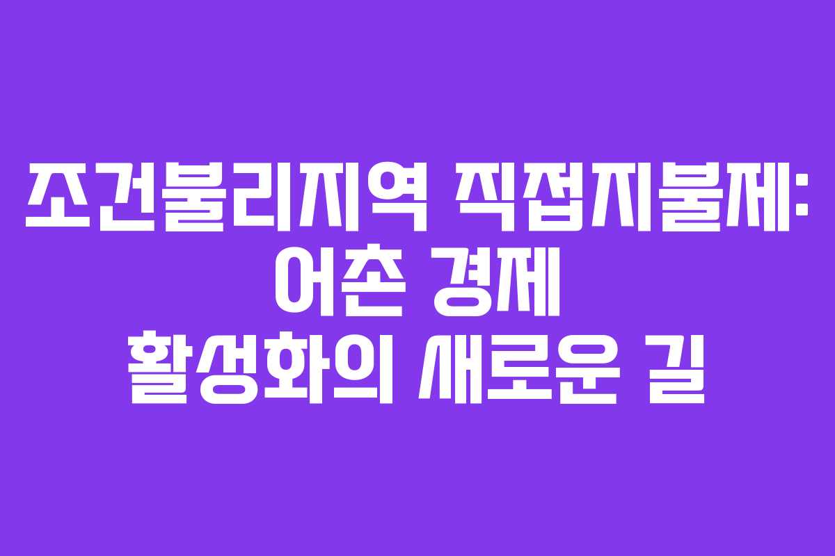 조건불리지역 직접지불제는 어업생산성이 낮고 정주여건이 불리한 어촌 지역의 경제 활성화를 위해 설계된 제도입니다. 이 제도는 어가당 일정 금액을 지원하여 어업인들의 소득을 보전하고, 지역의 정주여건을 개선하는 데 목적이 있습니다.