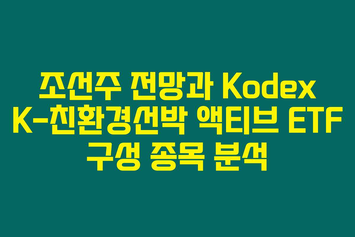 조선주 전망과 Kodex K-친환경선박 액티브 ETF 구성 종목 분석