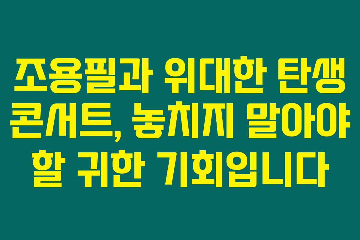 조용필과 위대한 탄생 콘서트 일정 및 예매 정보를 통해 이 특별한 순간을 놓치지 않길 바라며, 더욱 즐거운 시간이 되기를 기원합니다! 더 많은 정보가 궁금하다면 아래 링크도 확인해보세요.
