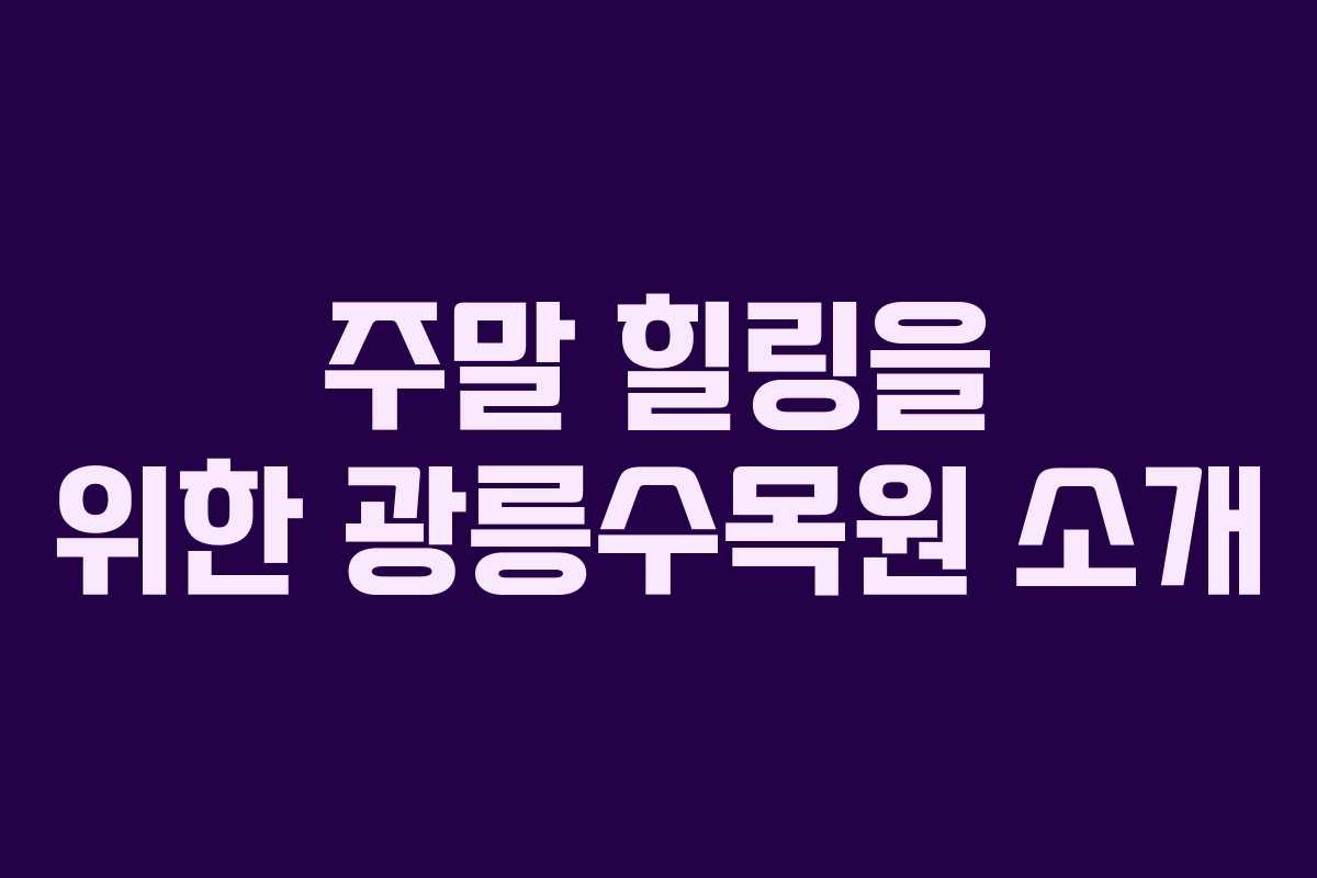 주말에 가까운 곳에서 자연을 느끼며 힐링할 수 있는 장소를 찾고 계신가요? 그렇다면 경기도 포천시에 위치한 광릉수목원을 추천드립니다. 이곳은 아름다운 자연 속에서 산책을 즐기고, 다양한 시설을 통해 편안한 시간을 보낼 수 있는 최적의 장소입니다.