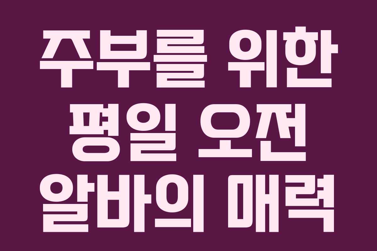 주부들이 가장 편안하게 시간을 활용할 수 있는 것은 평일 오전입니다. 아이들이 어린이집이나 학교에 가고 남편이 출근한 후, 조용한 집에서 자신만의 시간을 가질 수 있습니다. 이 시간 동안 집안일로 바쁘긴 하지만, 한편으로는 자유롭게 시간을 조절하며 알바를 할 수 있는 기회가 생깁니다.