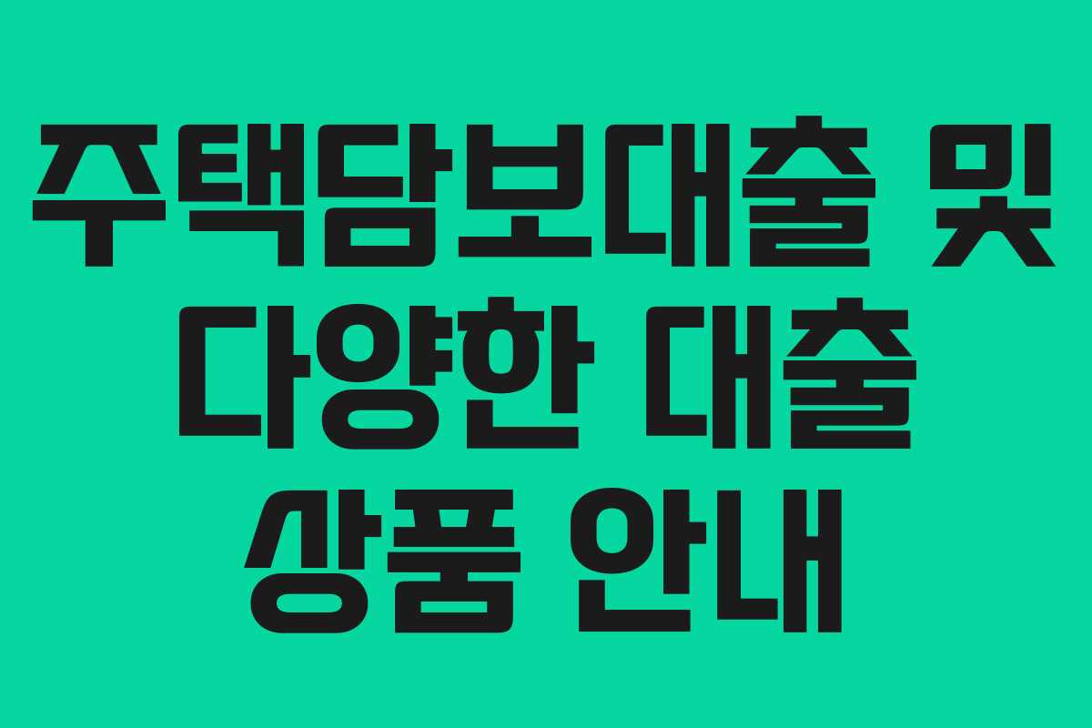 주택담보대출은 주택을 담보로 하여 자금을 조달받는 방법으로, 주택 구매나 재정 관리를 원하는 많은 이들에게 필수적인 금융 상품입니다. 이 글에서는 주택담보대출을 포함하여 대환대출, 전세퇴거자금 대출, 생활안정자금 대출 등 다양한 대출 상품에 대해 알아보고, 각 금융사의 상품을 비교하여 최적의 선택을 돕겠습니다.