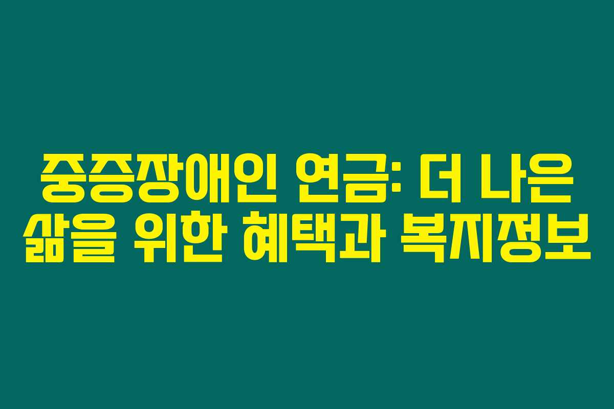 위 내용을 바탕으로 중증장애인 연금과 관련된 다양한 혜택을 잘 활용하시길 바라며, 더욱 안정적인 생활을 영위하시기 바랍니다. 복지제도의 활용에 대한 질문이나 궁금한 점이 있으시면 언제든지 문의하시기를 권장해요.