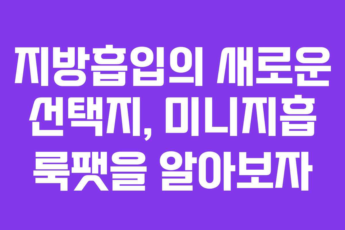- 미니지흡 룩팻의 장점: 빠르고 안전한 지방 제거