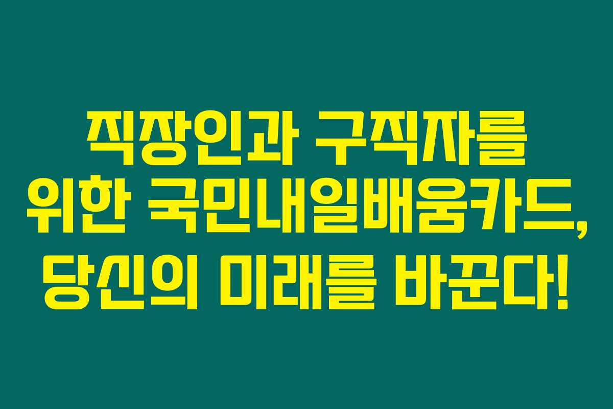 국민내일배움카드는 구직자, 실업자, 자영업자 등 일반 국민이 신청할 수 있으나, 현직 공무원 및 고소득 자영업자는 제외됩니다.