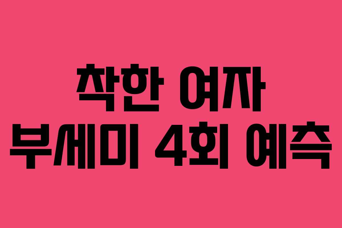 착한 여자 부세미 4회는 주인공 부세미가 자신의 완벽한 삶을 지키기 위해 치명적인 비밀을 폭로하려는 도여주의 음모에 맞서 싸우는 긴박한 이야기를 담고 있습니다. 이 에피소드에서 도여주는 자선 음악회에서 부세미의 이중생활에 대한 증거를 공개하려 하며, 부세미는 그에 맞서 모든 것을 걸고 반격을 시작하게 됩니다.