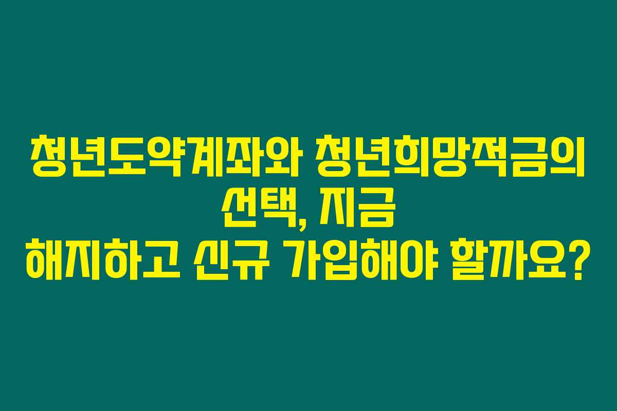 청년층 여러분, 청년희망적금과 청년도약계좌에 대해 고민하고 계신가요? 청년희망적금을 이미 가입 중이라면, 지금 당장 해지하고 청년도약계좌로 넘어가야 하는지에 대한 질문이 많을 텐데요. 해지와 재가입의 중요성을 놓치고 싶지 않다면 아래를 읽어보세요.