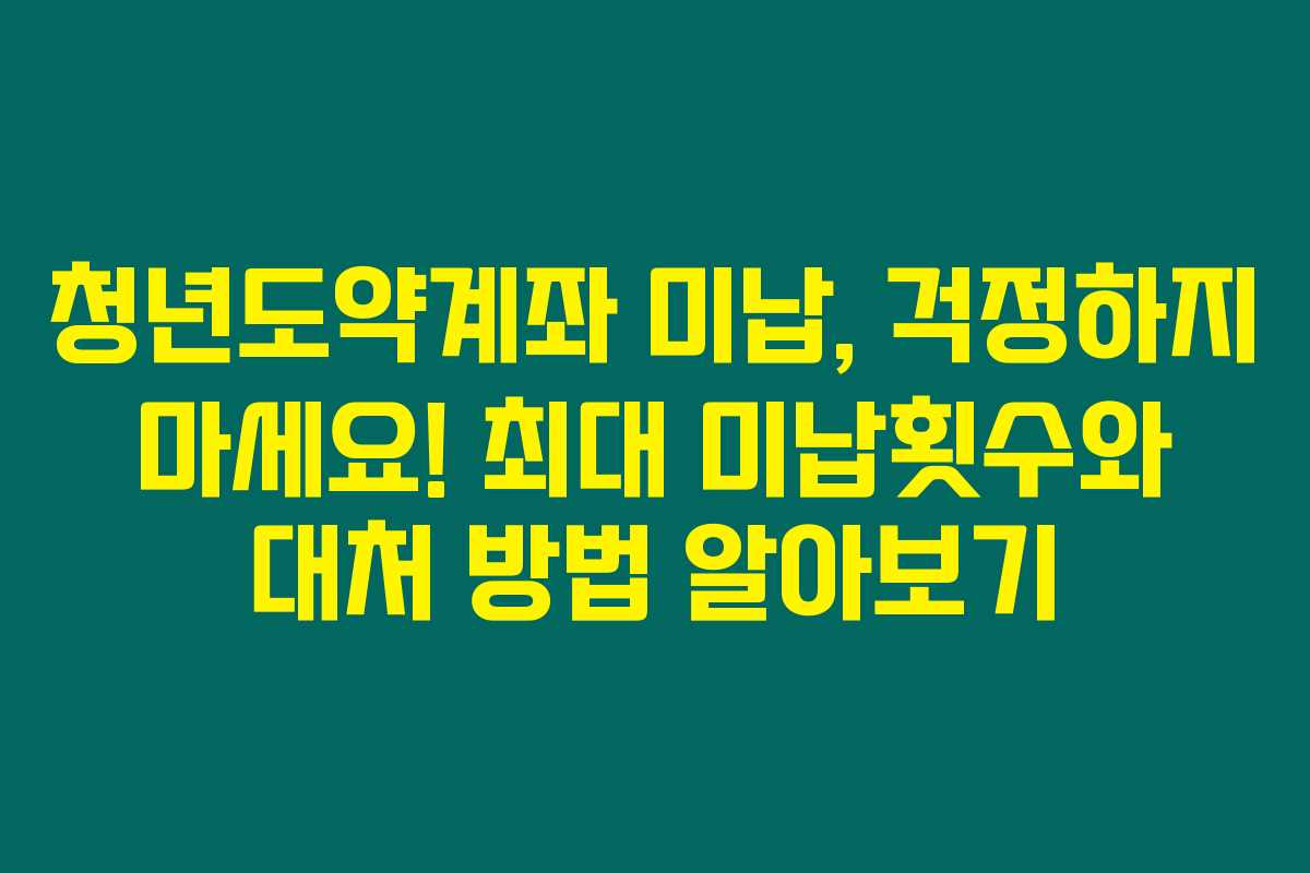 청년도약계좌는 정말 유연하게 운영되는 상품이에요. 그래서 적금 기간 중 최대 미납 횟수에 대한 걱정은 필요 없습니다. 제가 직접 알아본 바에 따르면, 미납은 계속 발생해도 계좌는 강제 해지되거나 불이익을 주지 않거든요.
