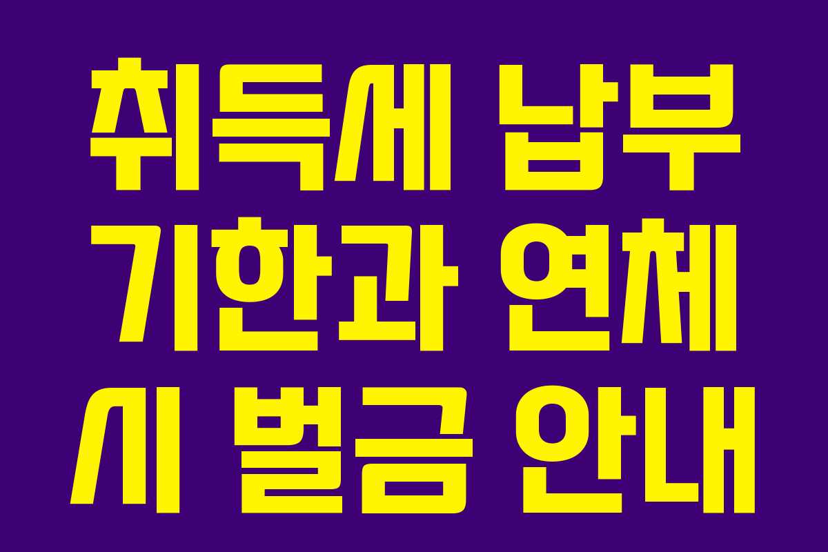 부동산, 차량 등 자산을 취득하게 된다면 반드시 취득세를 납부해야 합니다. 취득세는 자산을 취득한 날로부터 60일 이내에 신고하고 납부해야 하며, 이를 초과할 경우 가산세가 부과됩니다. 이번 글에서는 취득세의 납부 기한과 연체 시 발생하는 벌금, 그리고 이를 피하기 위한 팁을 자세히 설명하겠습니다.