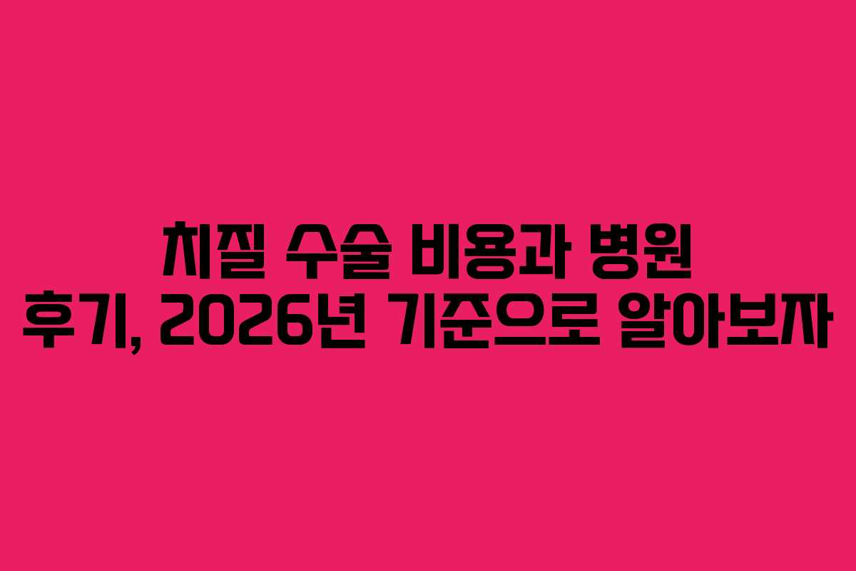치질 수술은 많은 사람들이 고민하는 문제 중 하나이며, 이에 대한 비용과 병원 후기를 확인하는 방법은 매우 중요합니다. 2026년을 기준으로 최신 정보를 제공하고자 하며, 이 글이 실제적인 도움이 되기를 바랍니다.