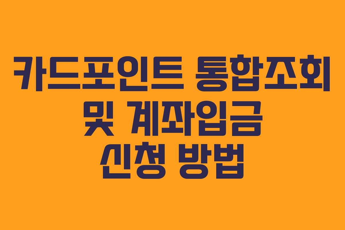 카드포인트 통합조회는 여러 카드사에서 적립한 포인트를 한 번에 확인하고 현금으로 입금 신청할 수 있는 유용한 서비스입니다. 이번 글에서는 여신금융협회가 제공하는 통합조회 시스템을 통해 카드포인트를 조회하고, 계좌로 입금 신청하는 방법에 대해 상세히 알아보겠습니다.