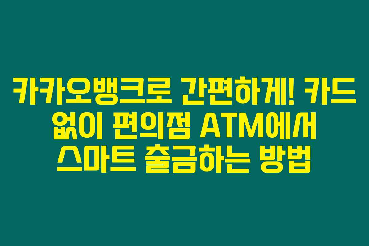 최근 스마트폰의 발전과 함께 금융 서비스도 급속히 변화하고 있습니다. 그중에서 카카오뱅크는 사용자에게 혁신적이고 간편한 스마트출금 서비스를 제공하여 많은 사랑을 받고 있어요. 이 서비스는 특히 카드 없이도 간편하게 현금을 인출할 수 있어 긴급하게 현금이 필요할 때 정말 유용하답니다. 아래를 읽어보시면 카카오뱅크 스마트출금 방법을 쉽게 배우실 수 있어요.