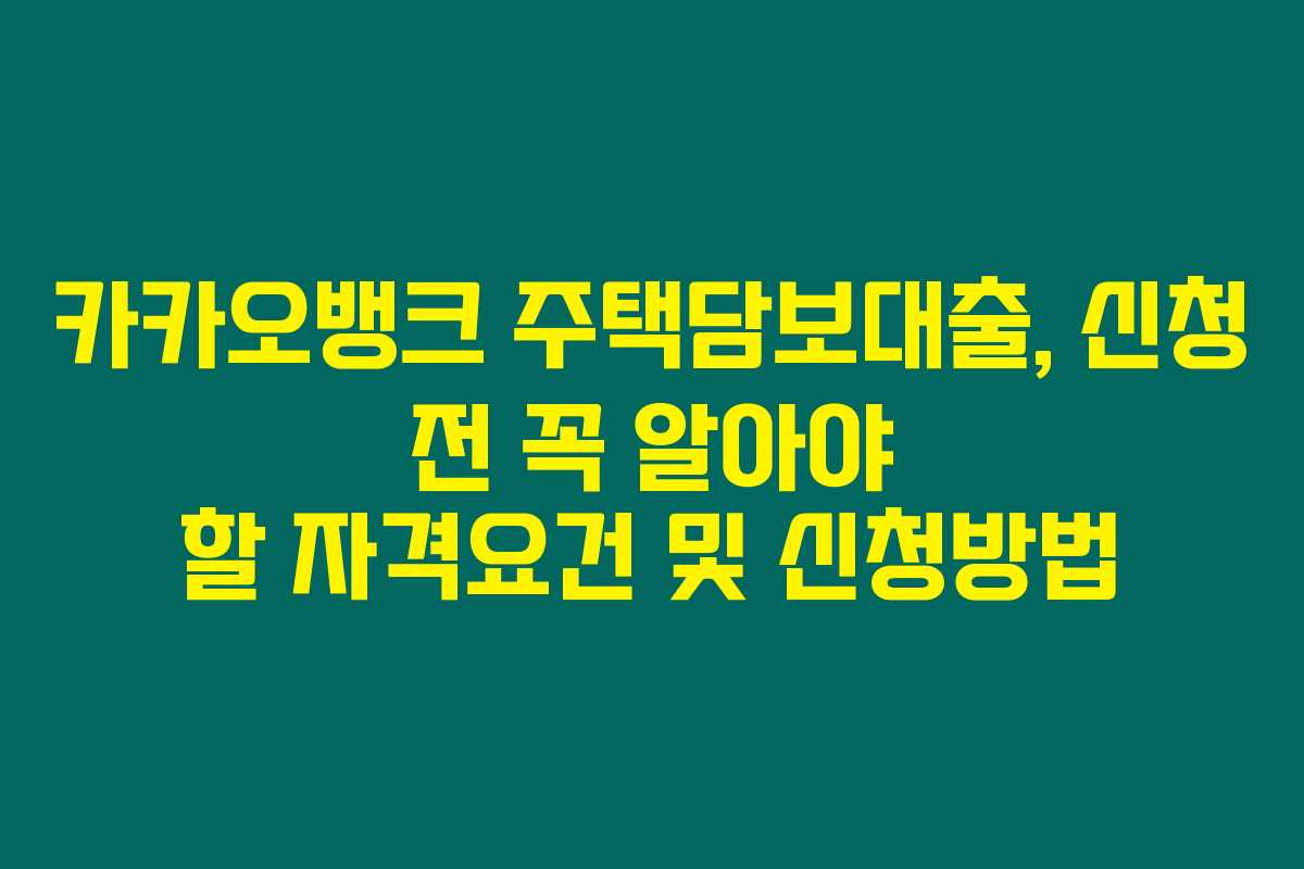 제가 직접 확인해본 바로는, 카카오뱅크 주택담보대출은 많은 사람들이 비대면으로 손쉽게 주택담보대출을 신청할 수 있게 해주는 상품입니다. 하지만, 이 대출을 이용하기 위해서는 몇 가지 조건과 방법이 필요하답니다. 아래를 읽어보시면 자격요건과 신청방법, 그리고 대출한도와 금리 등에 대해 상세히 알려드릴게요.
