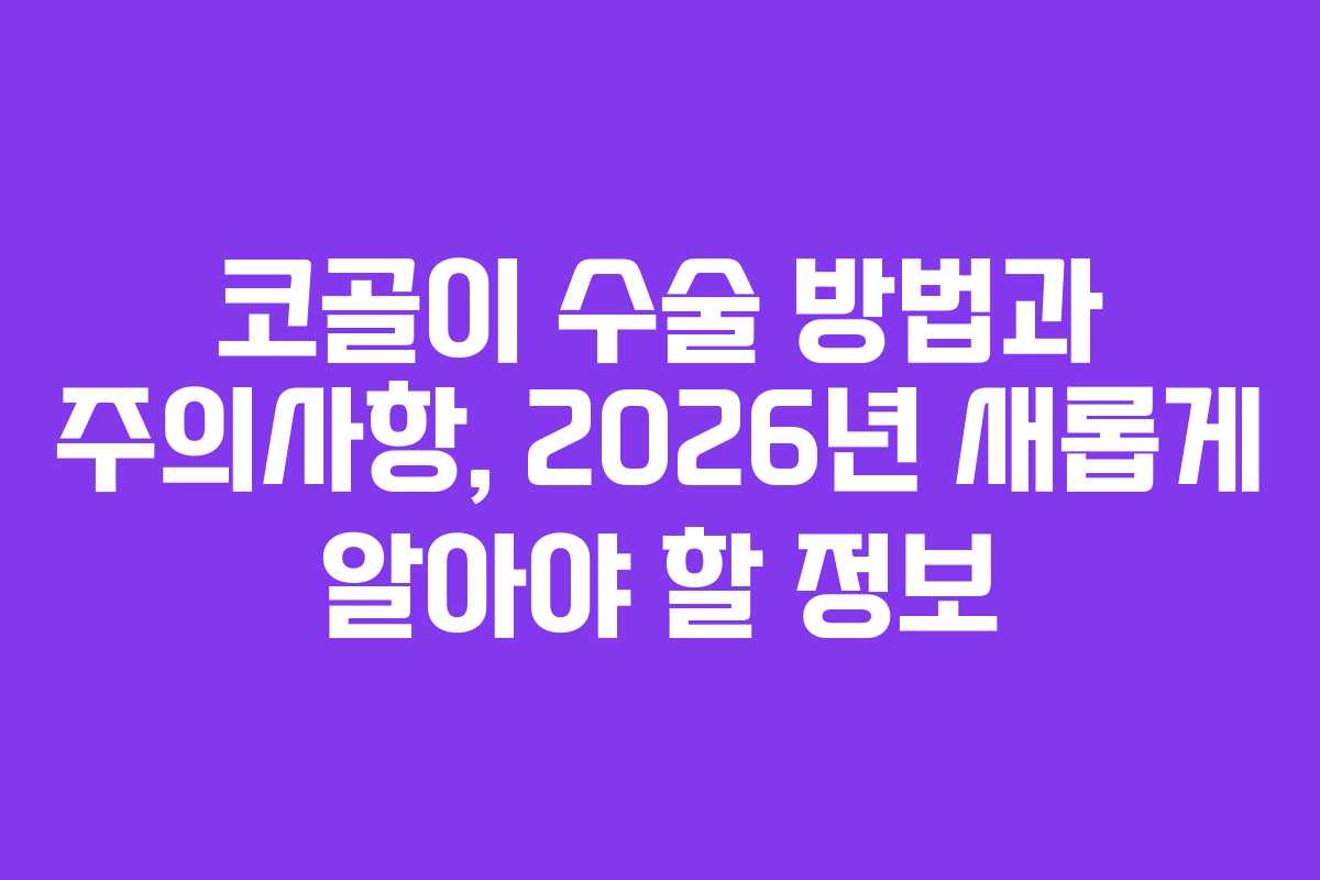 코골이는 단순한 수면의 소음이 아니라, 건강에 심각한 영향을 미칠 수 있는 문제입니다. 이 글에서는 코골이에 대한 이해를 바탕으로 수술적 치료 방법과 주의사항, 그리고 2026년 기준의 최신 정보를 제공합니다. 코골이는 적절한 관리와 치료가 필요한 사안임을 명심해야 합니다.