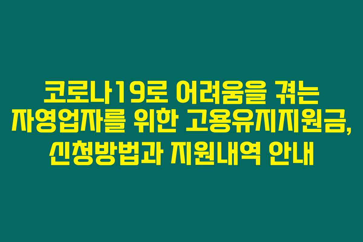 제가 알아본 바로는, 코로나19 팬데믹은 많은 자영업자와 중소기업에 심각한 영향을 미쳤습니다. 이에 따라 정부에서는 이들에게 실질적인 도움을 주기 위한 고용유지지원금 제도를 마련했습니다. 아래를 읽어보시면 고용유지지원금의 개념과 신청 조건, 신청 방법 등을 자세히 알 수 있을 거예요.
