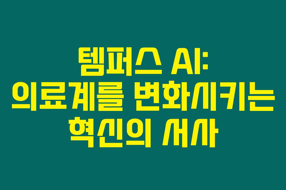 템퍼스 AI를 중심으로 한 AI 기반 의료 산업은 미래에 더 많은 약속과 가능성을 안고 있으며, 저 또한 이 변화의 흐름을 지켜보며 더욱 심층적으로 분석해 나갈 계획입니다.
