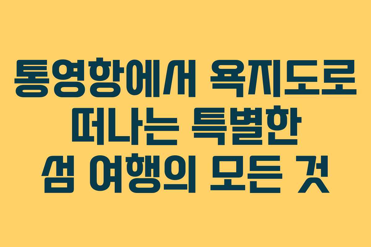 - 실전 가이드: 욕지도를 방문하기 위한 체크리스트