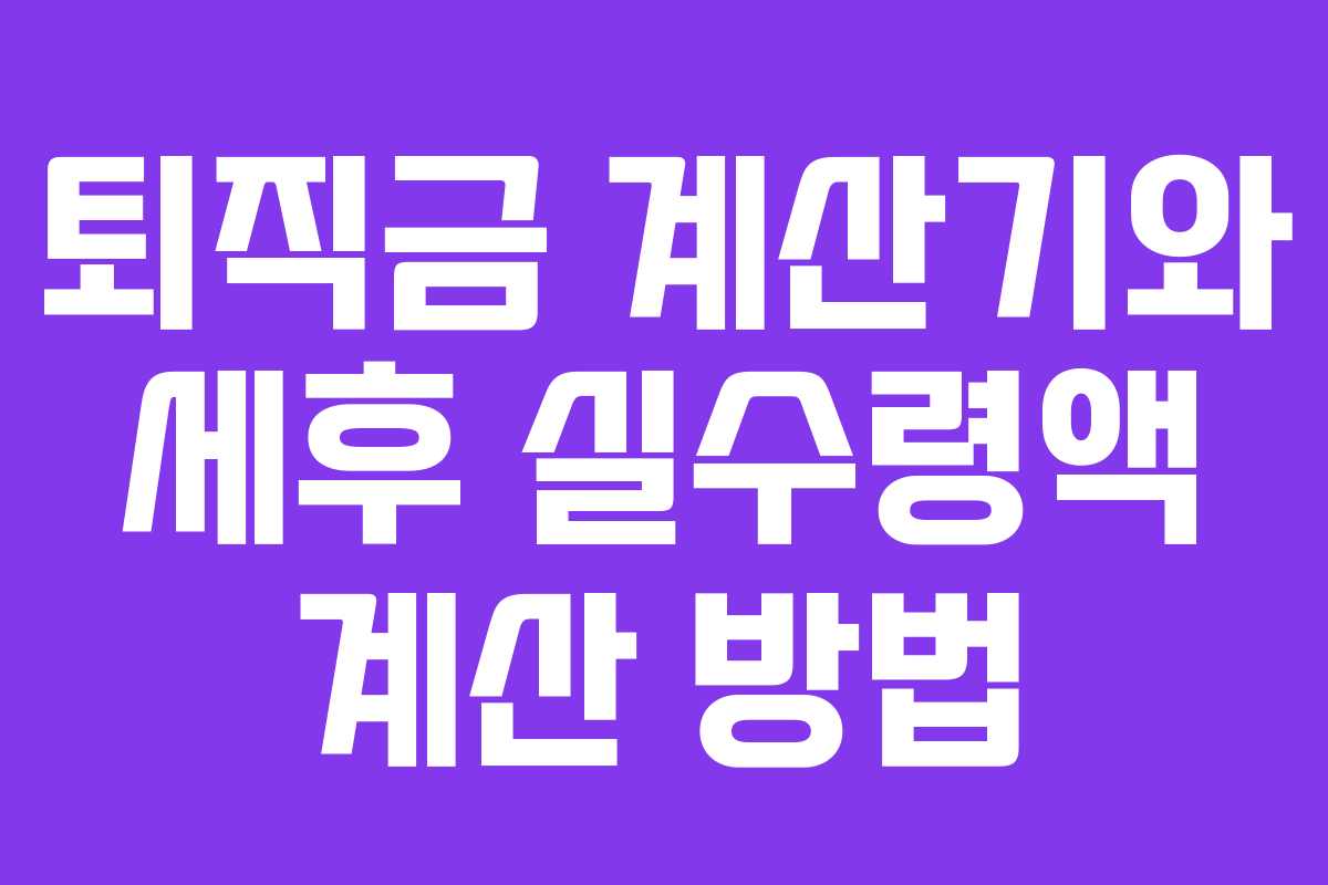 퇴직금을 정확히 계산하는 것은 퇴사 후의 재정 계획에 매우 중요합니다. 퇴직금 계산기를 활용하여 세후 실수령액을 확인하고 퇴직 소득세를 이해하는 방법을 알아보겠습니다.