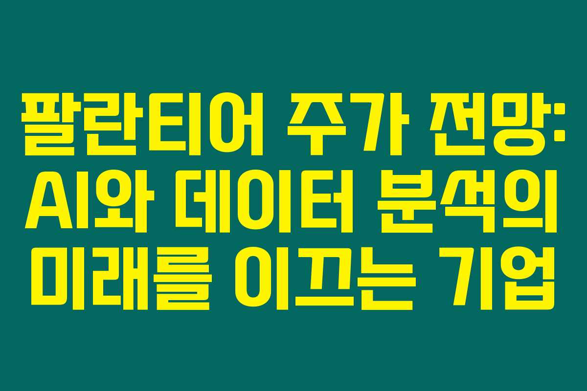 제가 직접 체크해본 바로는 팔란티어의 주가는 AI와 데이터 분석의 수요 증가로 인해 긍정적인 방향으로 나아갈 가능성이 높습니다.
