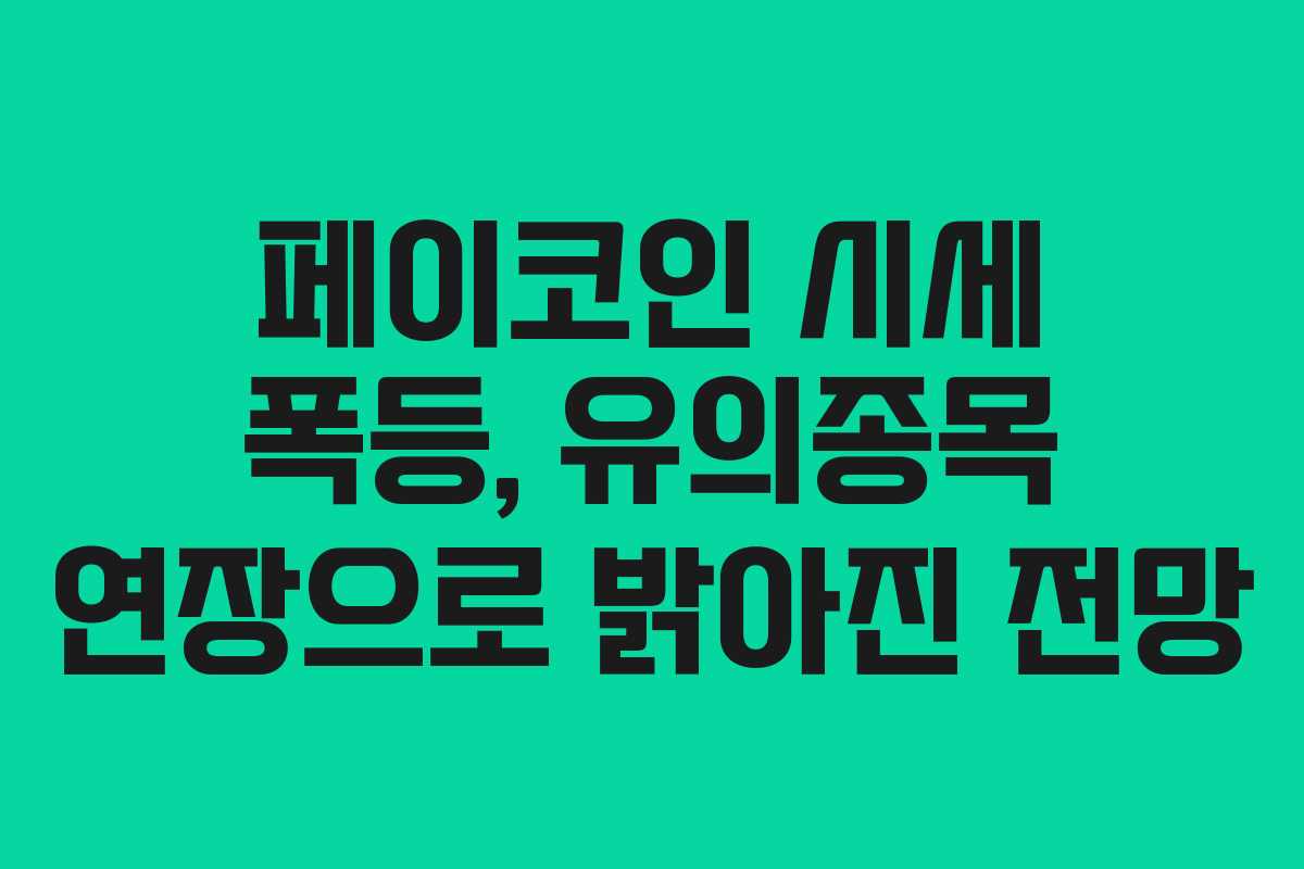 페이코인의 시세 상승과 유의종목 연장은 향후 투자에 대한 다양한 가능성을 제시합니다. 그러나 유의종목 지정 및 결제 서비스 중단 등 여러 변수들이 존재함으로, 신중한 접근이 필요합니다.