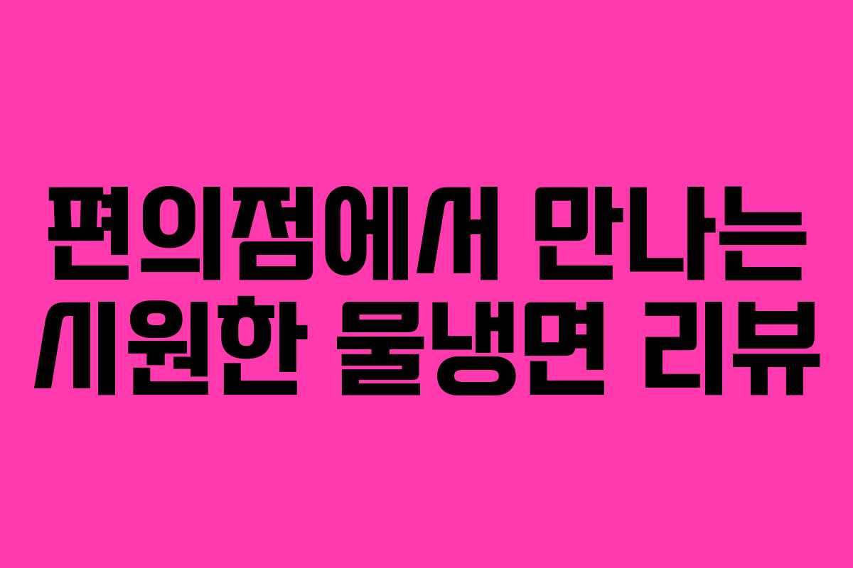 여름 더위가 한창인 지금, 간편하면서도 맛있는 음식을 찾는 일이 늘고 있습니다. 그런 상황에서 편의점에서 손쉽게 구할 수 있는 물냉면이 주목받고 있습니다. 이번 포스팅에서는 제가 최근에 구매한 편의점 물냉면에 대한 솔직한 리뷰를 전해드리겠습니다. 간편한 조리법과 맛, 그리고 개인적인 만족도를 함께 공유하겠습니다.