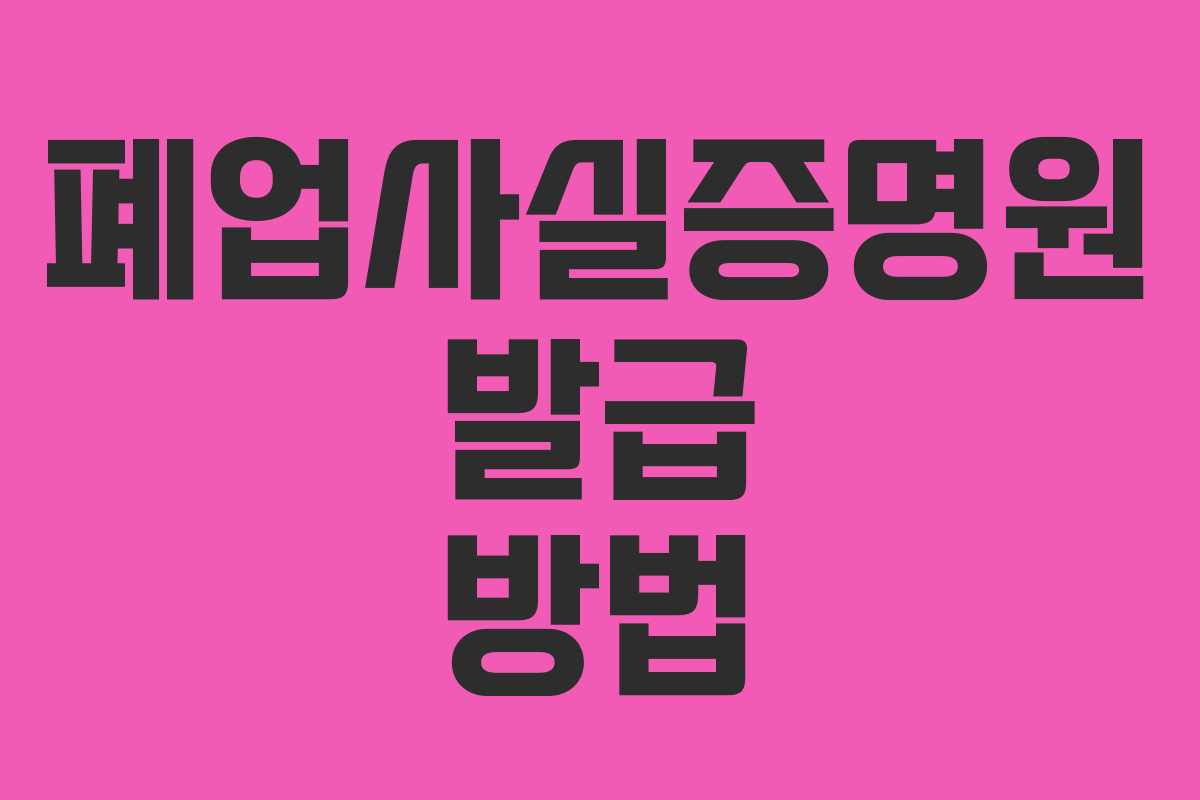 폐업사실증명원은 사업자가 사업을 종료했음을 공식적으로 증명하는 서류입니다. 이 서류는 실업급여나 폐업지원금을 신청할 때, 또는 각종 금융 거래 시 필요합니다. 따라서, 정확하고 신속하게 발급받는 것이 중요합니다.