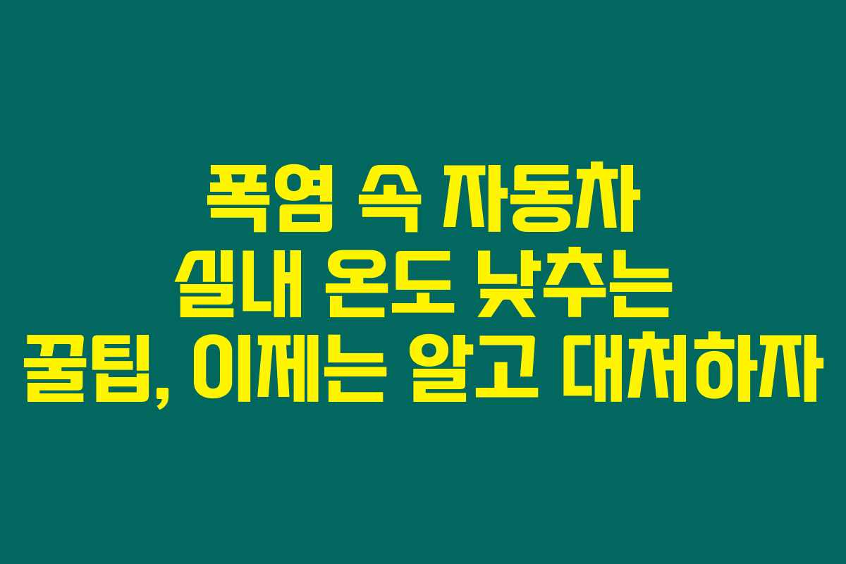 자동차 실내 온도가 얼마나 올라가는지 아세요? 외부 온도가 30도 정도가 될 때 차 안은 무려 70도까지 상승할 수 있다는 사실, 정말 놀랍지 않나요? 그럼 이제부터 실내 온도를 효과적으로 낮추는 방법을 통해 더위를 피해 봅시다.