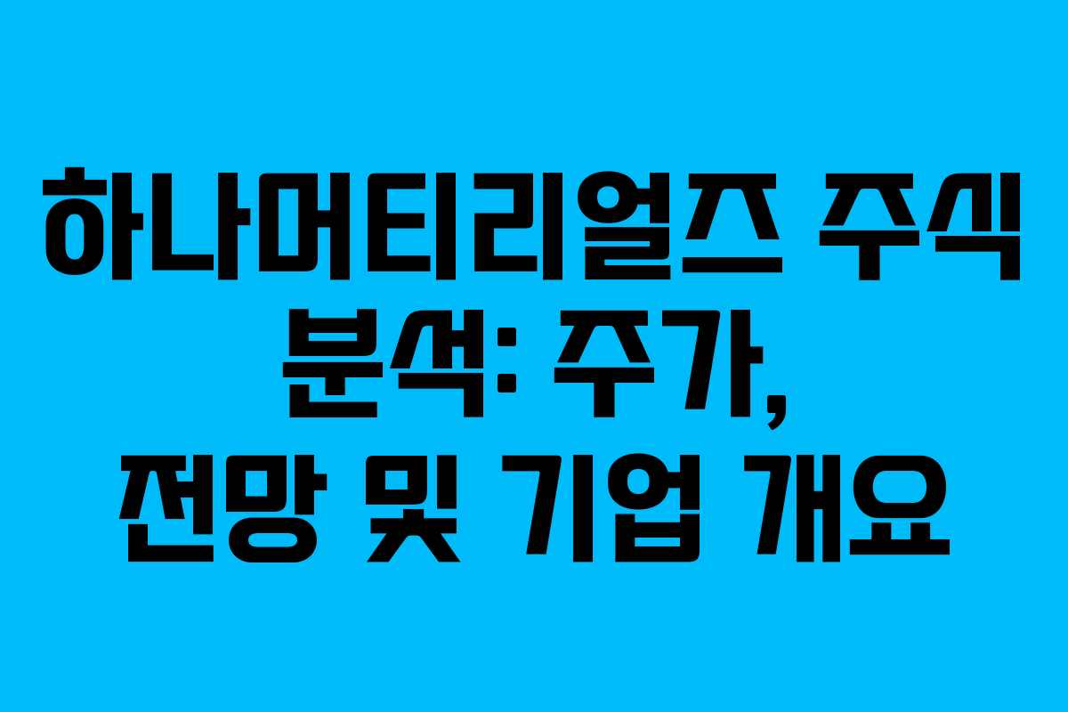 하나머티리얼즈는 반도체 제조 공정에 필수적인 소모성 부품을 제조 및 판매하는 기업으로, 최근 주식 시장에서의 성과와 앞으로의 전망이 주목받고 있습니다. 본 글에서는 하나머티리얼즈의 개요, 주요 사업, 주가 분석 및 전망에 대해 자세히 살펴보겠습니다.