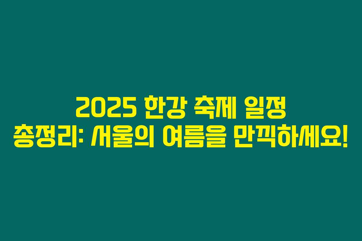 2025년에 있을 한강 축제 일정이 궁금하시다면 아래를 꼭 주목해 주세요! 여름의 더위를 잊고 서울의 매력을 만끽할 수 있는 축제 정보가 가득해요. 한강에서의 특별한 순간들을 놓치고 싶지 않다면, 올해의 일정과 즐길 거리를 확인해 보세요!
