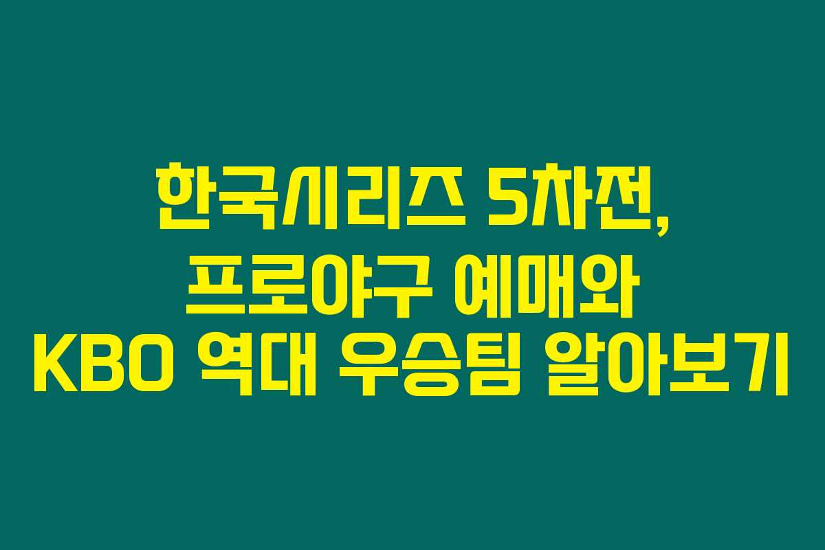 제가 알아본 바로는, 한국시리즈 5차전은 프로야구 팬들에게 아주 중요한 일정으로, 경기를 직접 관람하고자 하는 분들에게는 예매가 필수입니다. 아래를 읽어보시면 이번 경기에 대한 예매 방법, 취소 절차, 그리고 KBO의 역대 우승팀에 대해 자세히 알아보게 될 것입니다.