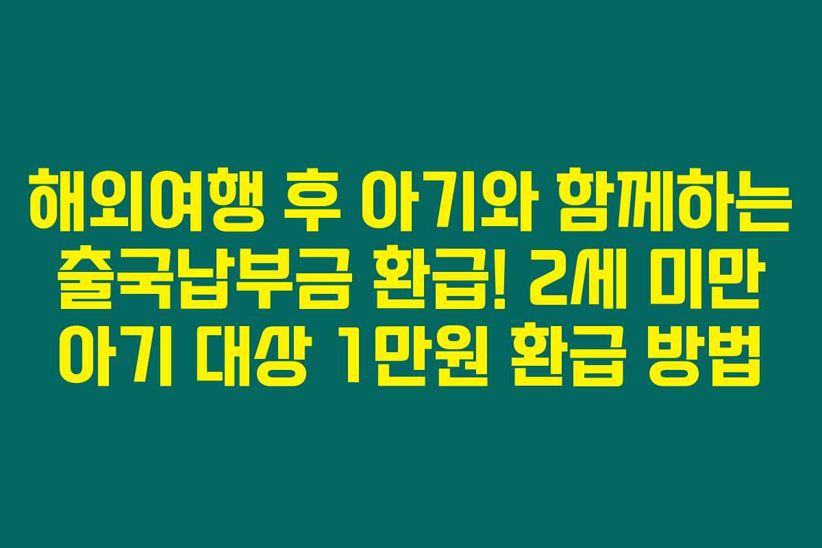 제가 알아본 바로는, 출국납부금 환급 서비스는 해외여행을 다녀온 아기 부모에게 큰 도움이 되는 제도입니다. 특히 2세 미만 아기를 동반한 경우 1만원을 환급받을 수 있는 방법을 알려드리려고 해요. 아래를 읽어보시면 이 환급을 어떻게 신청할 수 있는지와 유의사항에 대해 알게 되실 거에요.