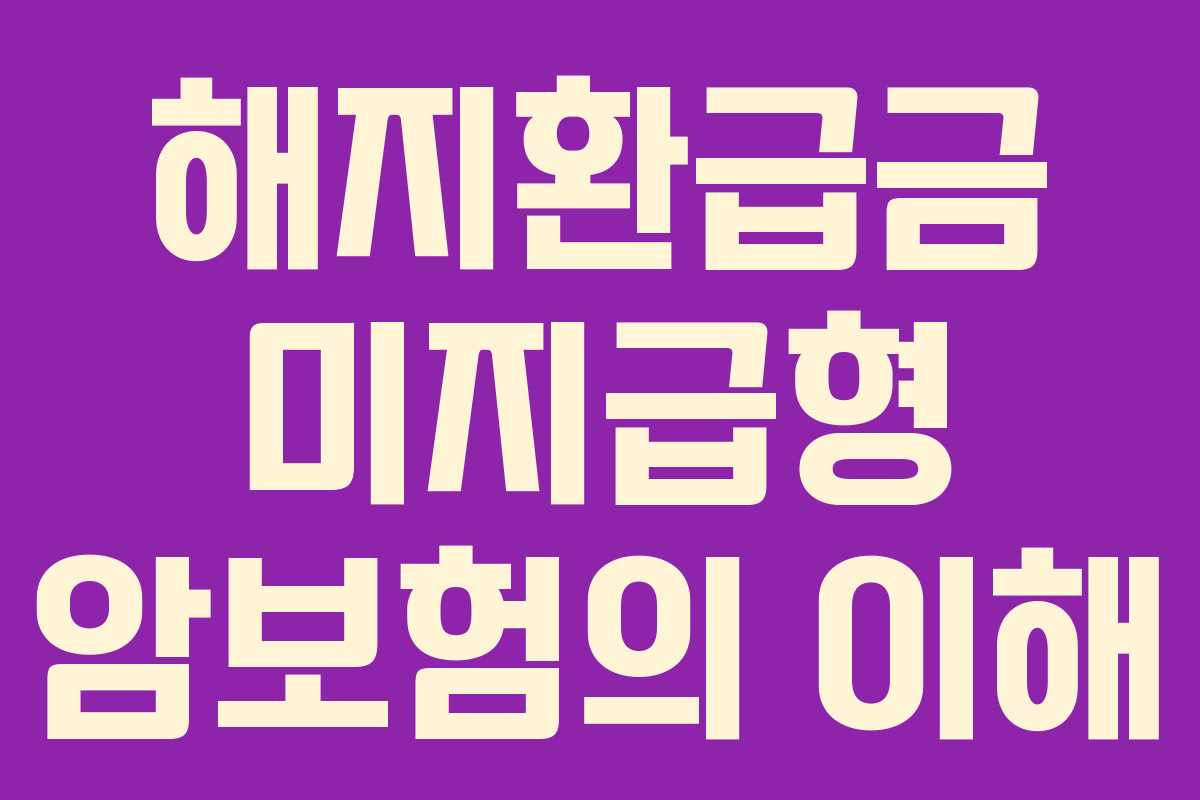해지환급금 미지급형 암보험은 계약 해지 시 환급금이 없는 대신, 보험료가 상대적으로 저렴하여 더 높은 보장을 받을 수 있는 형태의 보험입니다.