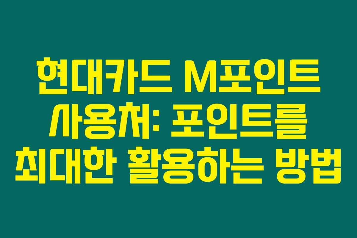 현대카드 M포인트는 정말 많은 방법으로 활용할 수 있으니, 꼭 필요한 방법을 찾아 정리하여 사용해보세요. 포인트 사용의 즐거움을 만끽하실 수 있을 거예요!