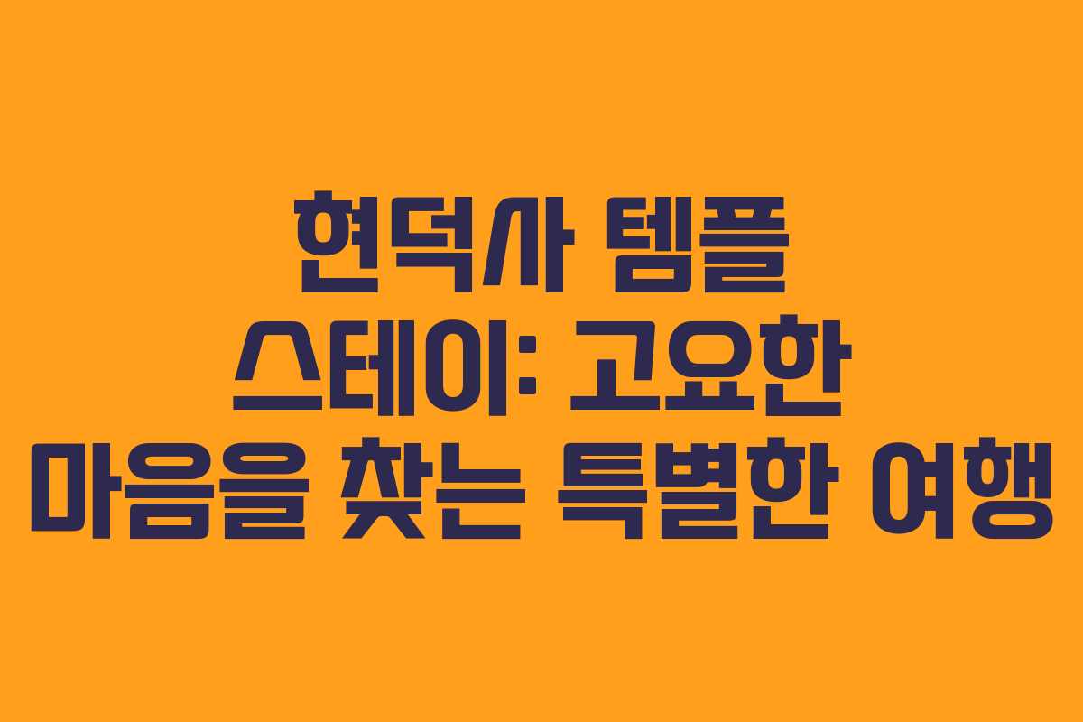 현덕사 템플 스테이: 고요한 마음을 찾는 특별한 여행